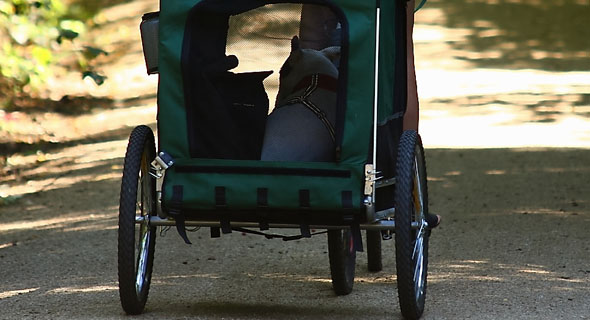 Wenn ihr in der Stadt eine gewisse Strecke zurücklegen müsst, bis ihr an der Stelle ankommt, wo ihr mit eurem Hund in Ruhe laufen könnt, sind Hundeanhänger und Lastenräder eine Option. Damit läuft der Hund zwar nicht selbst, aber er wird sicher durch den Verkehr transportiert.